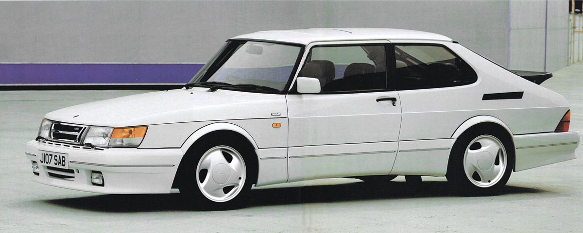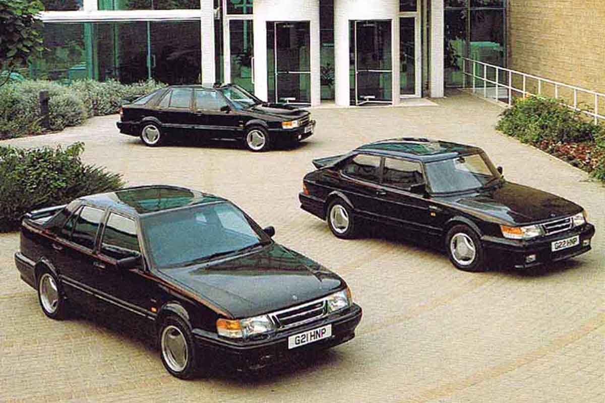 1990 and Saab (UK) introduces the Performance Range. There are three models. In addition to the 9000, the CD and 900 are added. All are given Carlsson performance upgrades - Aero bumpers, spoilers and graphics. The alloy wheels have a three spoke design.